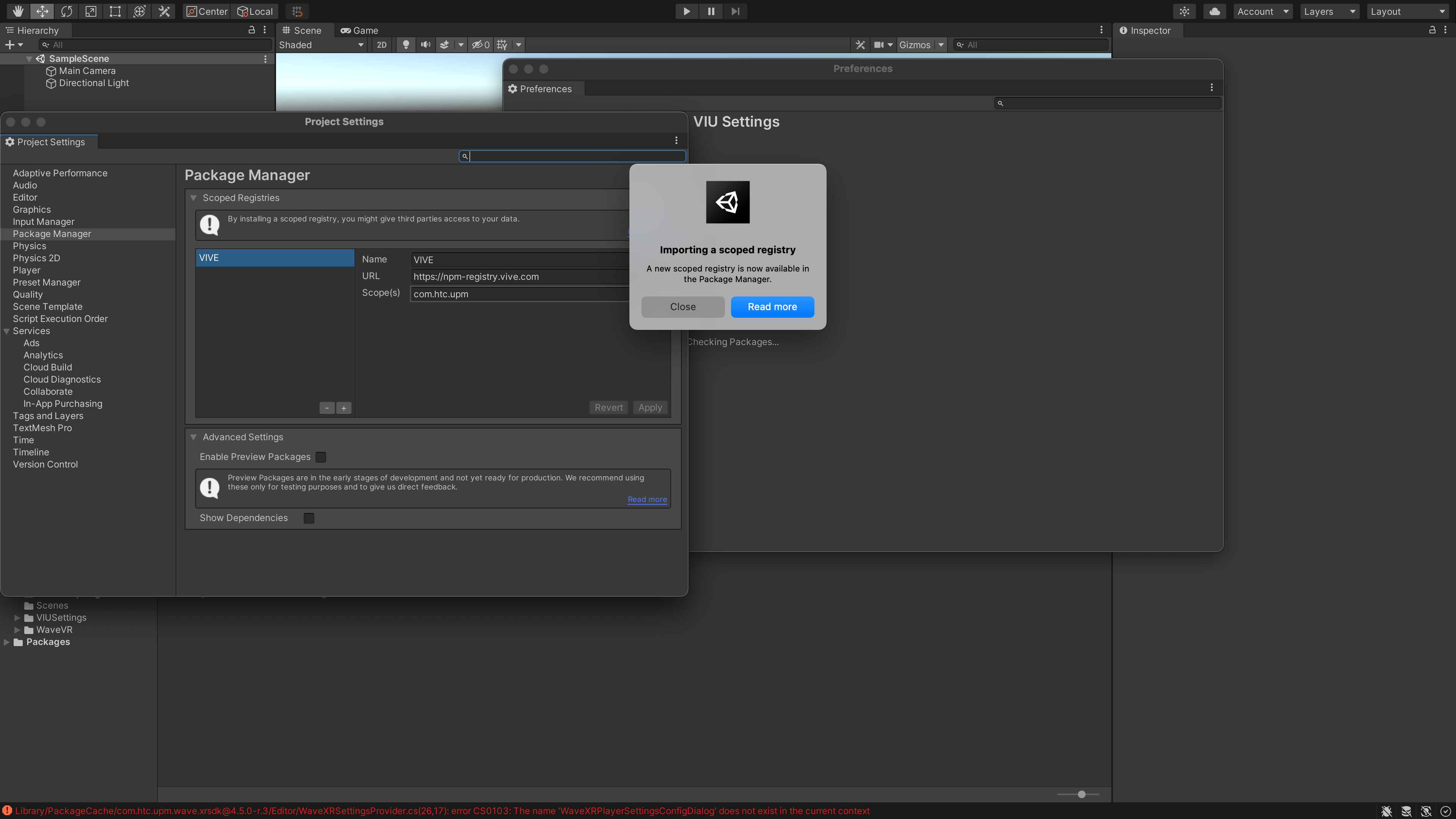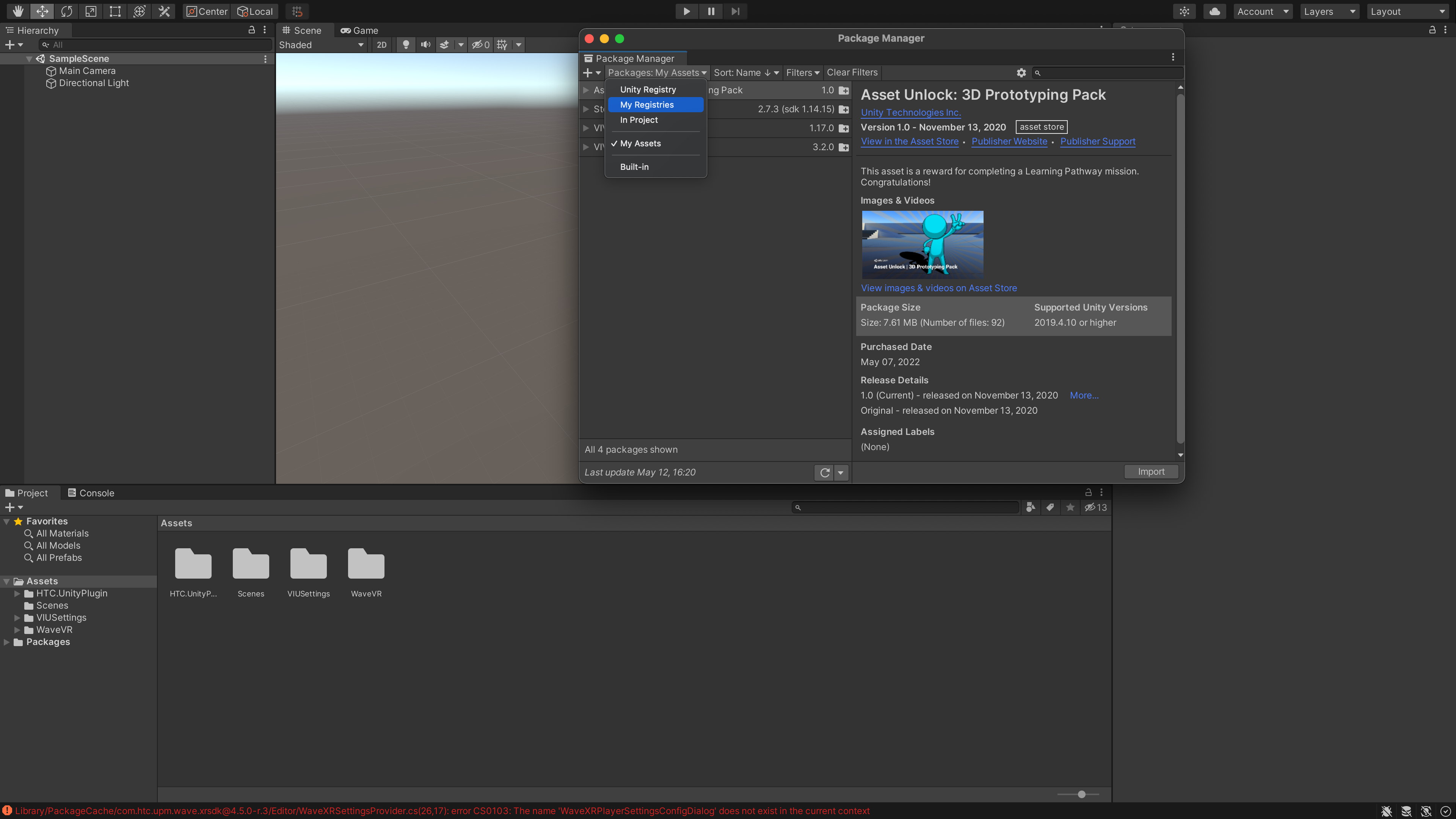 Step 7. Check wether VIVE WAVE XR Plugin is installed in your My Registries. If not, pleas install it.