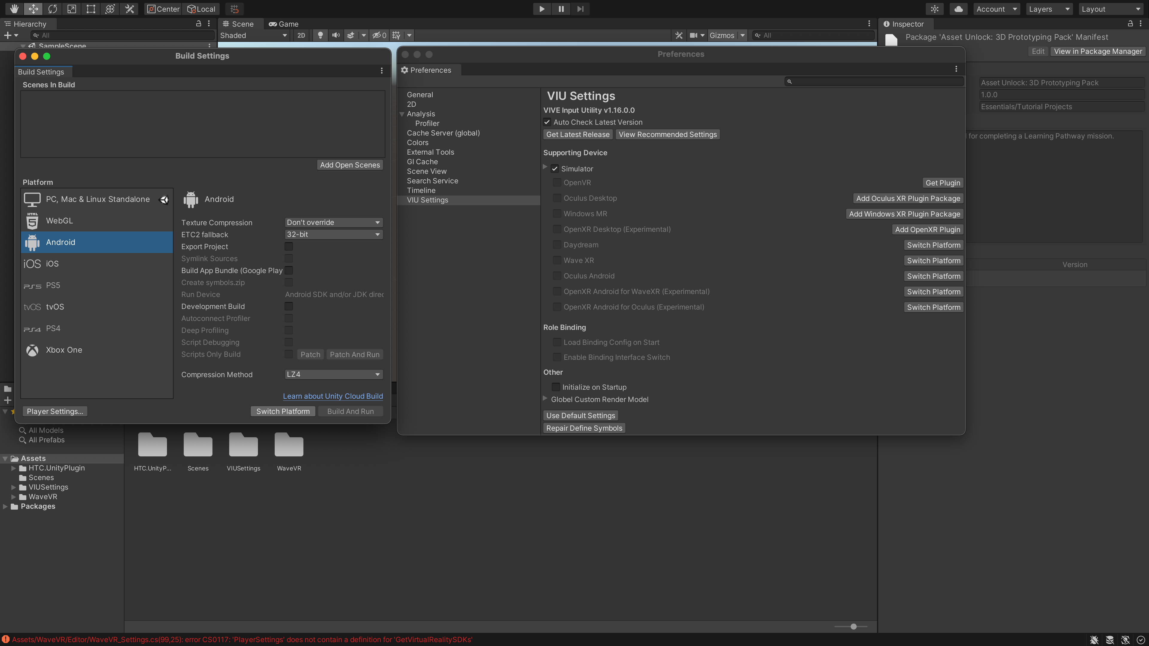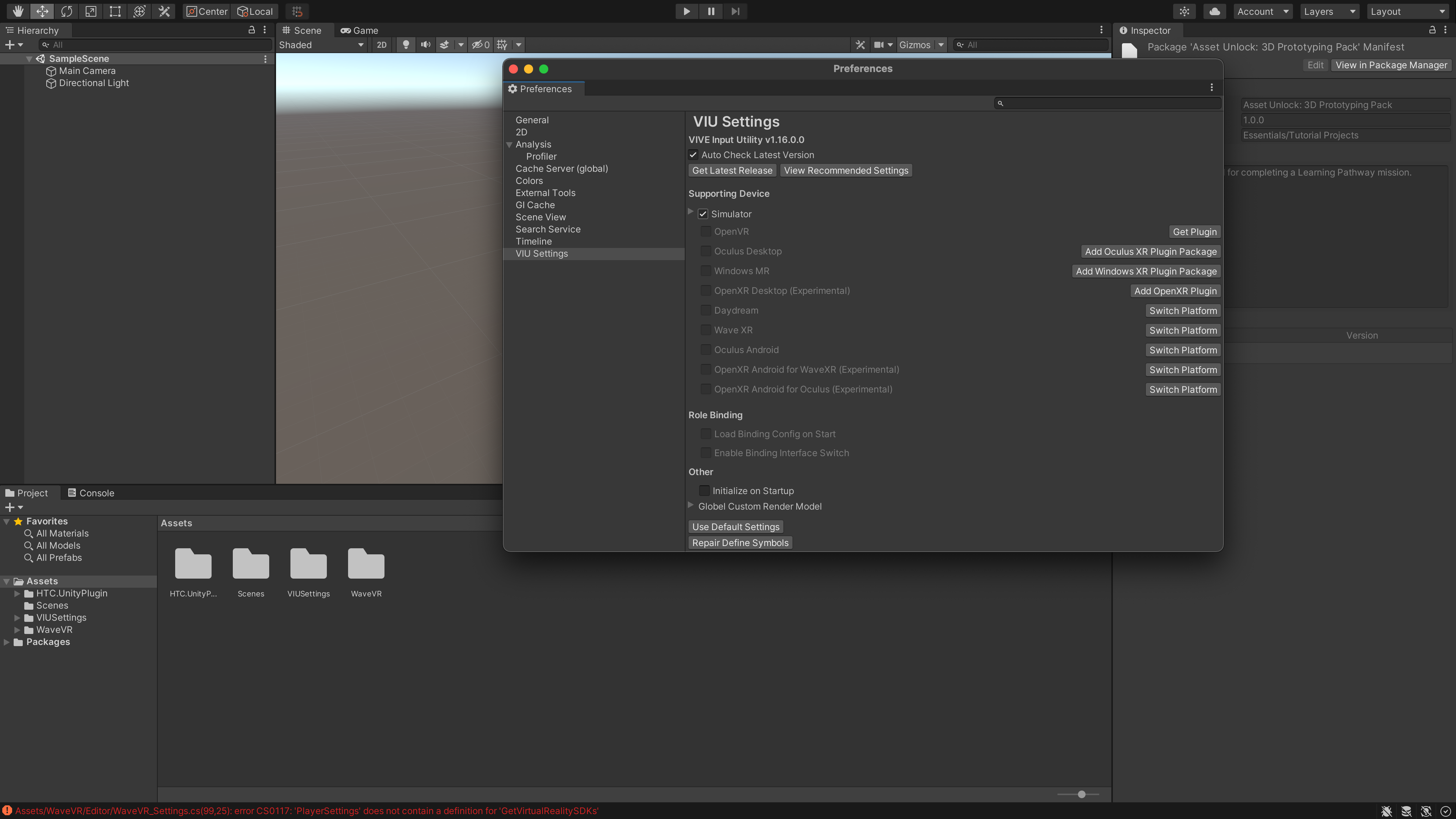 Step3. Package Manager → VIVE Wave SDK Import same as Step 1